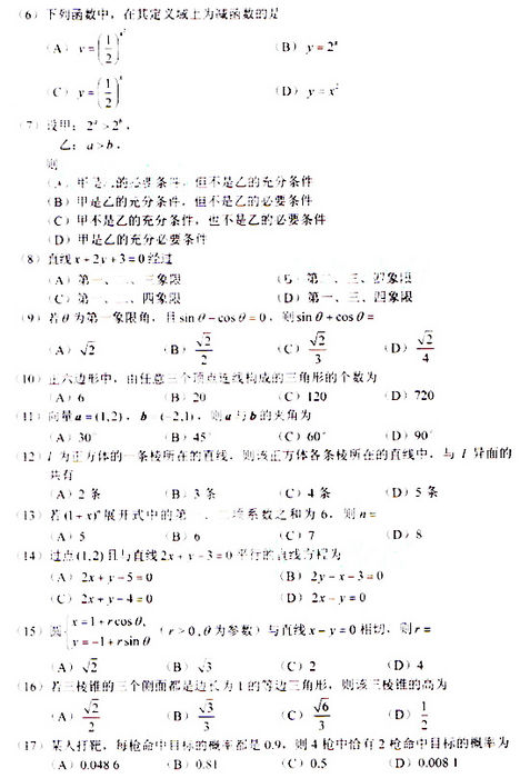 本文标签:四川成考 理数 2009年成考高起点数学(理)真题及参考答案