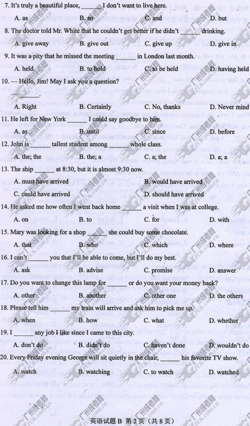 本文标签:四川成考 模拟试题高起点 四川省成人高考2014年统一考试英语真题B卷