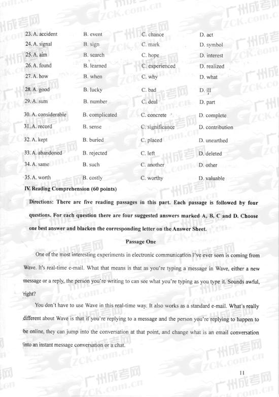 本文标签:四川成考 英语 成人高考2010年统一考试专升本英语试题