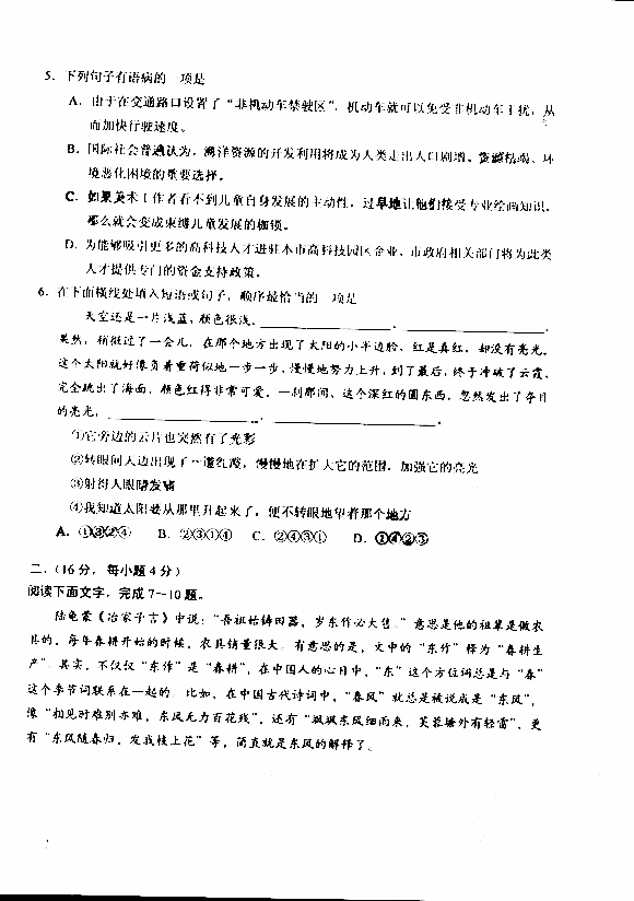 本文标签:四川成考 语文 2011年成人高校招生统一考试高起专语文真题及答案